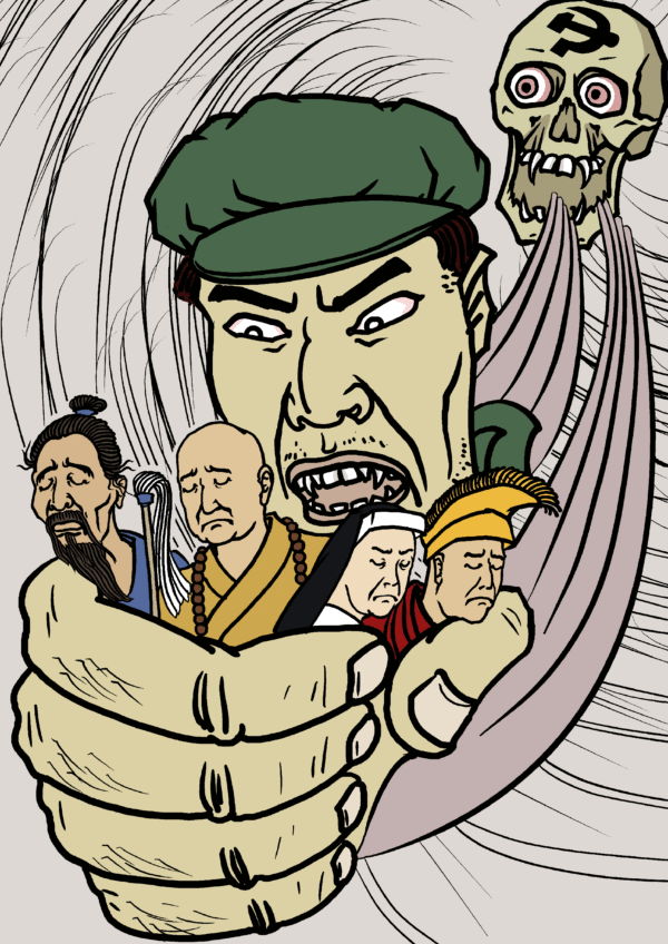 让我们来回忆一下中国在共产党统治之下步履艰难走过的五十五年,看一看中国共产党在夺取政权之后是怎样利用政府机制,以阶级斗争为纲领来实行阶级灭绝,以暴力革命作工具来实行恐怖统治的。它“杀人”与“诛心”并用,镇压共产党之外的一切信仰;粉墨登场,为共产党在中国的“造神”运动拉开了大幕。根据共产党的阶级斗争理论和暴力革命学说,不断地消灭不同范围和群体中的异己分子。同时,用斗争加欺骗的手段强迫全国人民成为它暴虐统治下的顺民。