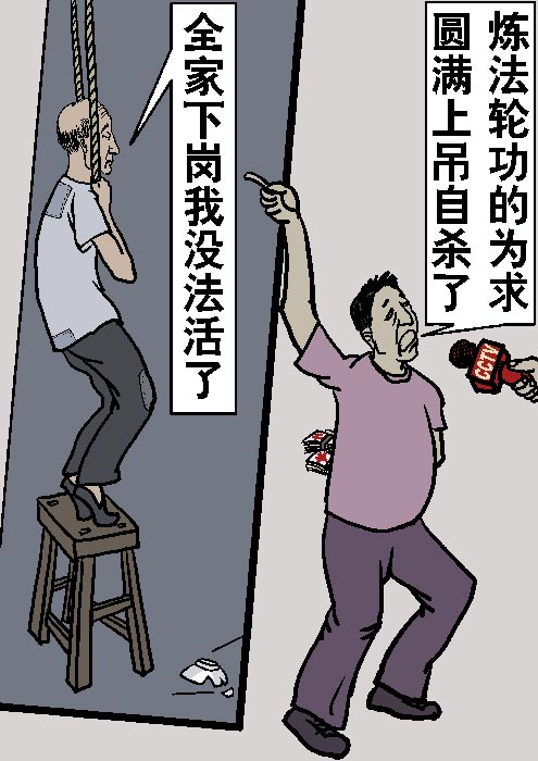 最为恶劣的,是在2001年1月导演了一场所谓的“自焚”闹剧,并通过新华社以从未有过的速度向全世界散播,嫁祸法轮功。这场闹剧,后被包括服务于联合国的国际教育发展组织(IED)在内的多个国际组织认定为虚假编造。在面对质询的时候,一名参与制作电视节目的工作人员辩称,中央电视台所播放的部分镜头,是“事后补拍”的,镇压者的流氓本性暴露无遗。人们不禁发出疑问,那些“视死如归的法轮功弟子”,怎么会和中共当局如此合作?