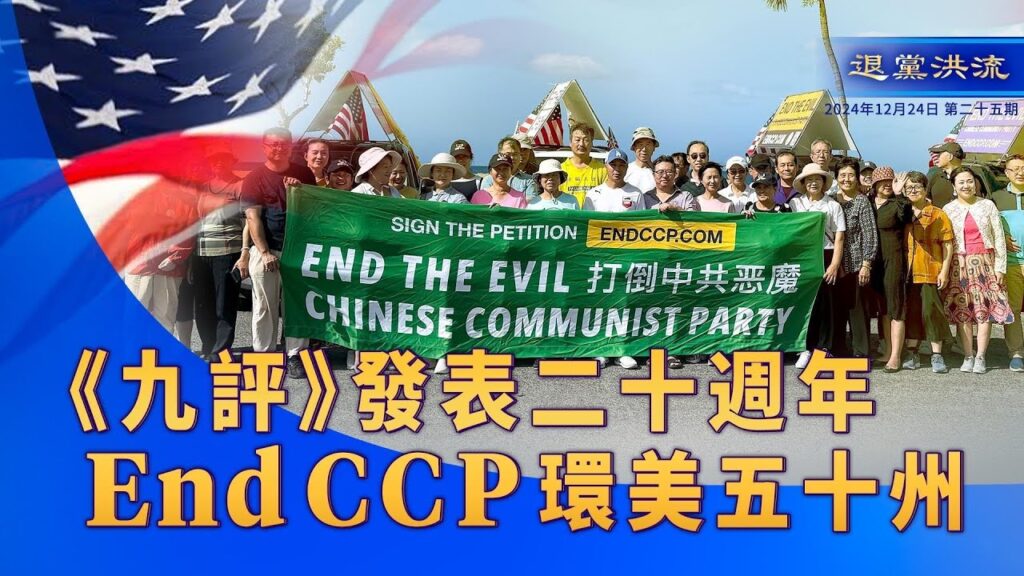 請看完廣告!謝謝! 《退*黨*洪流》第二十五期 《九評》發表20週年 EndCCP環美50州 本期內容提要 1 紀念《九評》發表20週年 各界聲援 2 讀《九評》如夢方醒 墨爾本華人三:退.故事 3 End CCP車隊走遍全美50個州 傳播真相 4 重磅消息:川普將命令自己的政府拒絕所有共產主義者入境 5 「打倒中共惡魔」(ENDCCP)徵簽留言精選 6 三:退.聲明精選——「本人是一名某派出所的網絡警察,本以為自己能夠像電視劇那樣抓壞人保護一方平安,卻被安排監視網絡輿論,刪帖禁言封號。...在三年疫情過後,我更加...認識了中共的邪惡本質。」 7 退*黨*數據解析——截至2024年12月13號,三:退.總人數已達440,139,167人。 觀眾好友們,大家好!歡迎收看本期的《退*黨*洪流》。我是孟竹! 2004年11月,一本奇書《九評共產黨》(簡稱《九評》)橫空出世,在人類歷史上第一次揭開了共產黨的邪靈本質。 《九評》立刻引發了中國人空前的精神大覺醒,掀起了退出邪惡共產黨的黨、團、隊組織(簡稱「三:退.」)的大潮。 今年是大紀元系列社論《九評共產黨》發表20週年,到目前為止已經有4.38億中國人退出了中共黨、團、隊組織,從心靈上徹底拋棄了中共。在這個歷史關鍵時刻,趕緊與中共做出切割,迎接一個沒有中共的新中國,一個沒有共產主義的新世界! 這是本期的開場白。 解體中共洪勢 一、今年是大紀元系列社論《九評共產黨》發表20週年,「全球退*黨*服務中心」在法拉盛舉行盛大集會,來自社會各階層的多位中西來賓發言,讚頌《九評》對中國人和全世界帶來的巨大影響。隨後,大紀元和新!唐!人:電視台舉行《九評共產黨》20周年研討會,多位美國支持,聲援近4.4億中國人退出中共黨、團、隊組織。 二、讀《九評》如夢方醒 墨爾本華人三:退.故事 2004年11月19日,《九評共產黨》系列社論發表,系統揭露了中共的邪惡本質,眾多華人讀後如夢初醒,紛紛退出中共黨、團、隊組織(三:退.)。以下是幾個發生在澳洲墨爾本的真實故事。 三、End CCP車隊走遍全美50個州 傳播真相 「跨越千山萬水,我一次又一次為你而來……」,遐邇聞名的全球退*黨*服務中心「打倒中共惡魔」(End CCP)環美車隊,11月17日完成了在美國第50個州——夏威夷州的車遊。至此,他們圓滿地全部完成了走遍美國50個州進行「打倒中共惡魔」車遊的壯舉。 四、重磅消息:川普將命令自己的政府拒絕所有共產主義者入境 即將成為美國第47屆總統的川普最近宣布:將命令自己的政府拒絕所有共產主義者入境。 五、ENDCCP 徵簽留言精選 「全球退*黨*服務中心」在2020年6月份發起「打倒中共惡魔」(END THE EVIL CHINESE COMMUNIST PARTY)網絡徵簽活動,截止2024年12月份,網站上有超過29種語言,30多個國家的超過465萬民眾在徵簽網站上簽名、留言,發表他們對共產邪惡主義的唾棄和厭惡。 這些留言是摒棄中共的聲音,是對一個沒有共產主義的新世界的期盼..... 六、《三:退.聲明精選》 2004年以來,每天都有大量民眾在全球退*黨*中心網站發表「三:退.」聲明。如今,在「天滅中共」歷史大潮的引領下,全球都出現了清除共產邪惡主義毒素的各種行動,各國紛紛聯手,反擊、圍剿和瓦解中共的滲透。民眾對共產邪惡主義有了更清晰的認識。這些聲明,是生命覺醒後發自內心最真實的聲音...... 七、《退*黨*數據解析》 2004年11月,大紀元發表社論《九評共產黨》後,在全球退*黨*中心網站發表聲明三:退.的人數,每天在持續攀升,其中包括中國大陸、及世界各地華人,截至2024年12月13日,已達440,139,167人,下面請看《退*黨*數據解析》。 感謝Joseph Ma為本欄目作曲!感謝新!唐!人:對本欄目的大力支持! 全球退*黨*中心 2024年12月24日 歡迎來到「退*黨*中心」頻道,若是喜歡,請大家「點贊」和點擊邊上「小鈴鐺」訂閱並與您的親朋好友分享。謝謝! 支持退*黨*中心,捐款網址: https://d23cn2e5ixdm06.cloudfront.net/donation 因為我們是符合美國聯邦501(c)(3)的非盈利機構,美國的朋友,您的捐款可獲得聯邦抵稅。 支持退*黨*中心,上亞馬遜購物時請使用這個連結 https://smile.amazon.com 第一次登陸smile.amazon.com時,要選自己支援的非盈利組織,選 The Tuidang Center (Global Service Center for Quitting Chinese Communist Party, Inc) ,那裡價格和amazon.com的一模一樣,東西也一模一樣。 --------------------------------------------------------------------------------------- 敬請關注退*黨*中心Tuidang Center...